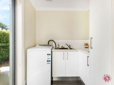 • A generously sized laundry offering ample storage, plus additional storage tucked neatly under the stairs