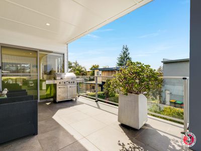Ascend the stunning timber staircase to the heart of the home, where sunlight floods the open-plan living, dining and kitchen space. This area seamlessly flows out to the alfresco entertaining zone and a broad balcony across the front—perfect for morning coffees, sunset drinks, or soaking in the fresh coastal air.