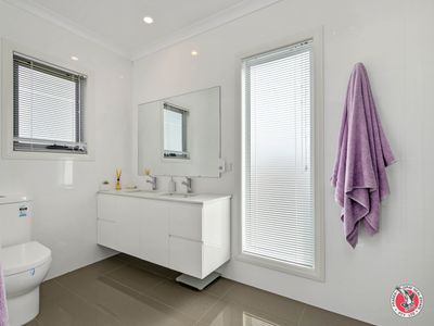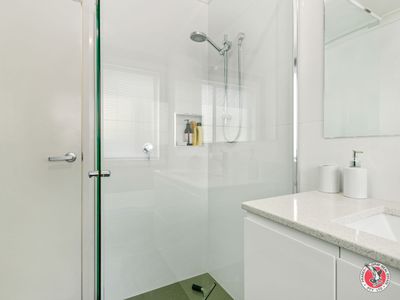 The master suite is your private retreat which can be shut off from the main living area, features access to the front balcony, a walk-in robe and a spacious ensuite with double vanity. Plus, a second separate powder room upstairs, ideal for guests.