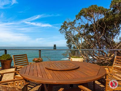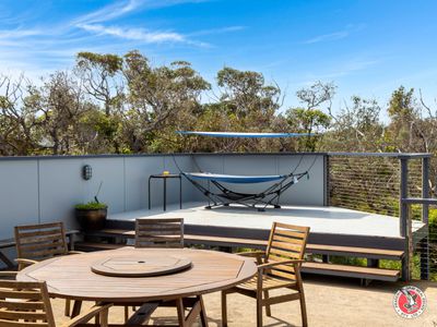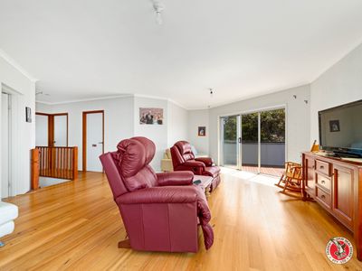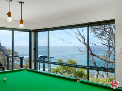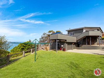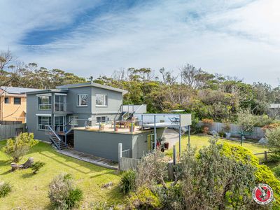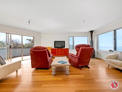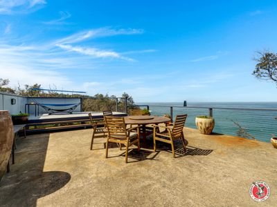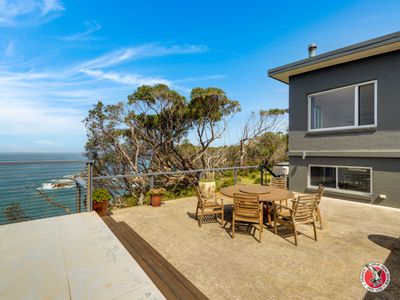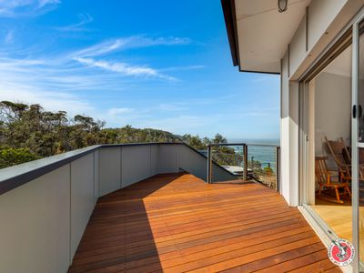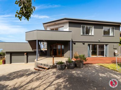 As you approach via the sweeping driveway, you're immediately struck by the home’s commanding presence and the natural grandeur of its surroundings. The double garage connects effortlessly to the residence via a private stairway leading to an expansive wraparound entertainer’s deck (approx. 74.3sqm) — your front-row seat to breathtaking sunrises, salty breezes, and the rhythmic soundtrack of the ocean.