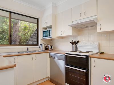 Step through the front courtyard and into the open-plan living space where the kitchen, dining and lounge all flow together — perfect for relaxed, easy living. This welcoming space continues out to your private alfresco and garden, a peaceful spot to unwind after a day at the beach.