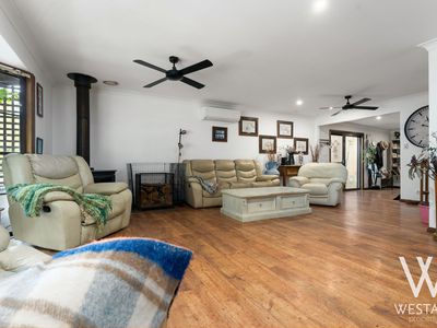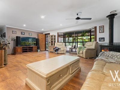 - Two bathrooms, two toilets, and multiple climate control options including three split system air conditioners, ceiling fans, and a wood combustion fireplace